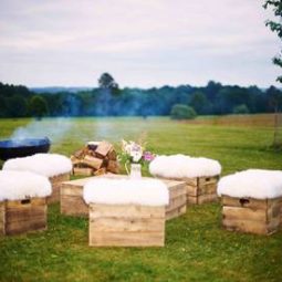 Farmhouse Low Lounge Table with Hessian Apple Crate Stools (12x)