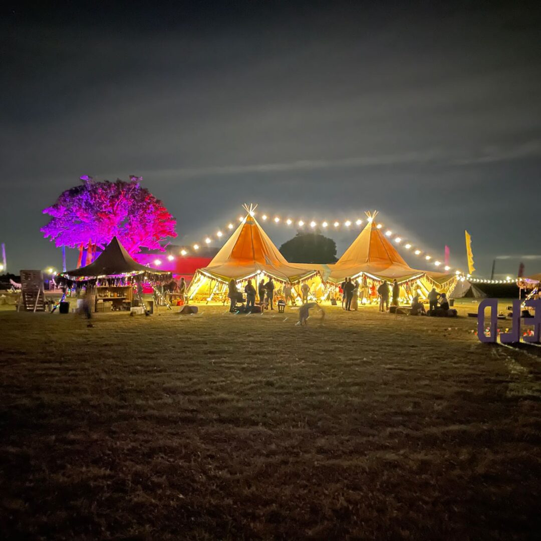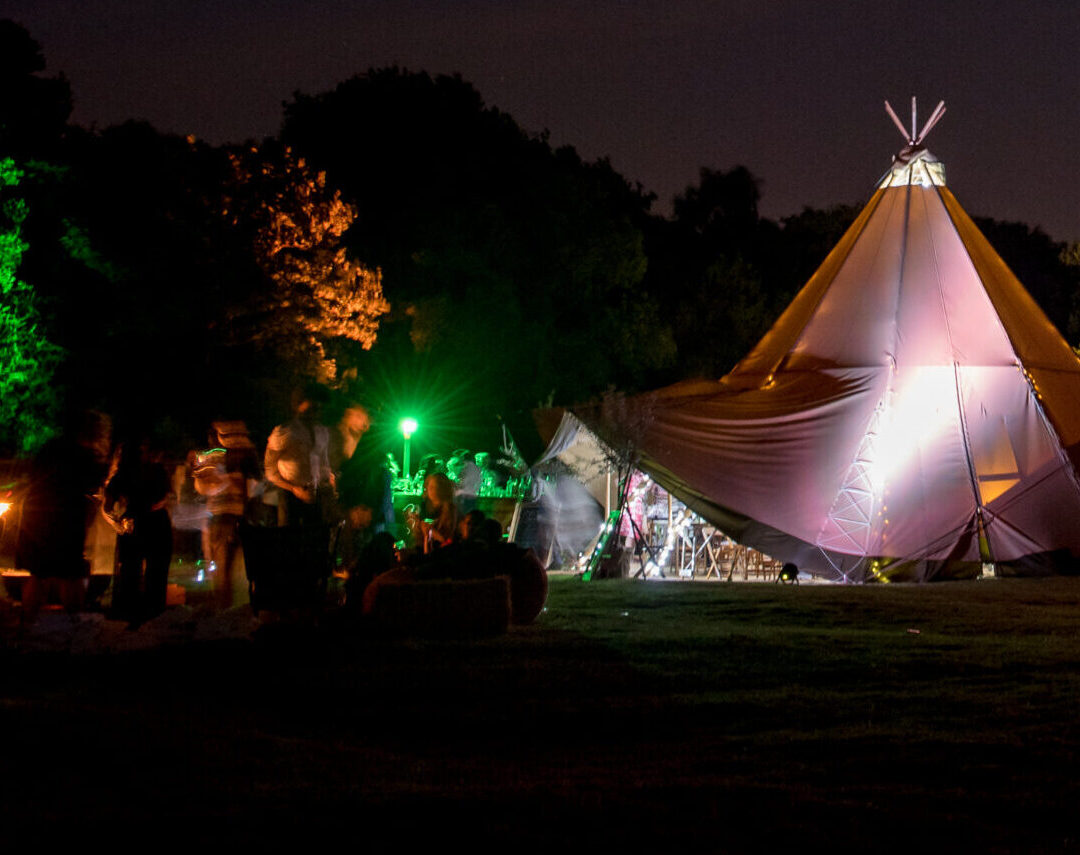 Outdoor LED uplighters (battery powered) can be cycled through colours to find the one that matches your brand or product colours, or you can choose something to match the theme or feel of the night.